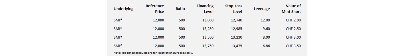For the sake of simplicity, we will limit the example to portfolio hedging with SMI® Mini‑Shorts. However, the same method can also be applied 1 : 1 to hedge with SMI® Knock‑Out Puts.