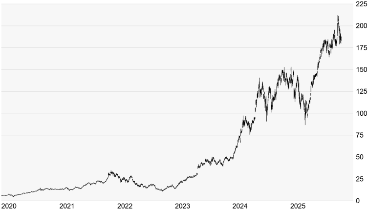 Quelle: Bloomberg. Bitte beachten Sie, dass aus der Wertentwicklung in der Vergangenheit nicht auf die zukünftige Wertentwicklung geschlossen werden kann. | | Charttechnik: Die NVIDIA-Aktie kletterte erst am 29. Oktober auf ein neues Rekordhoch bei 212,19 US-Dollar. Danach kamen jedoch Zweifel an der hohen Bewertung des Konzerns auf, der jüngst als erstes Unternehmen überhaupt eine Börsenbewertung von mehr als 5 Billionen US-Dollar erreichte. Die Aktie gab in der Folge um mehr als 15 Prozent auf 178,91 Dollar nach, ehe sie sich stabilisieren konnte. Gestern gab die Aktie bereits wieder ein Lebenszeichen von sich, als sie hauchdünn oberhalb der aktuell bei