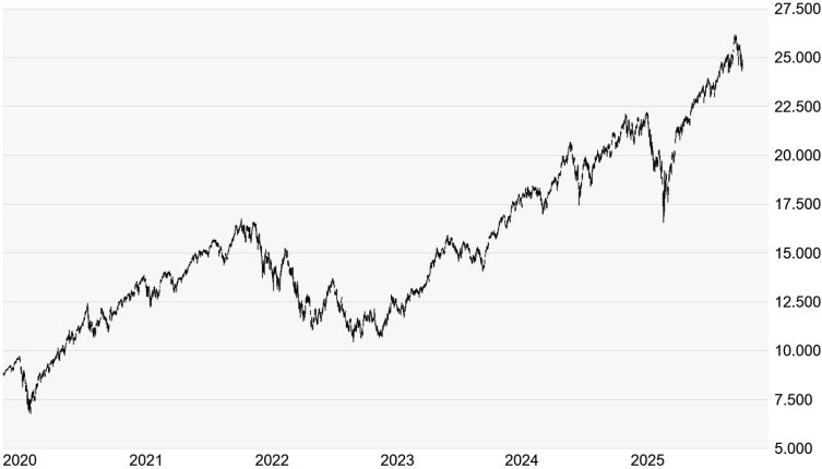 Quelle: Bloomberg. Bitte beachten Sie, dass aus der Wertentwicklung in der Vergangenheit nicht auf die zukünftige Wertentwicklung geschlossen werden kann. | | Charttechnik: Auch der NASDAQ-100 konnte sein Talfahrt gestern stoppen. Bereits am Dienstag konnte sich der Technologie-Leitindex um mehr als 200 Punkte von seinem Tagestief bei 24.299 Punkten lösen. Die Euphorie um "Gemini 3.0" beförderte den NASDAQ-100 gestern sogar kurzzeitig bis auf 24.905 Punkte nach oben, ehe die Anleger im Vorfeld der NVIDIA-Zahlen wieder vorsichtiger wurden. Inzwischen dürfte klar sein, dass der KI-Boom noch nicht beendet ist. Der NASDAQ-100 dürfte heute deutlich oberhalb der