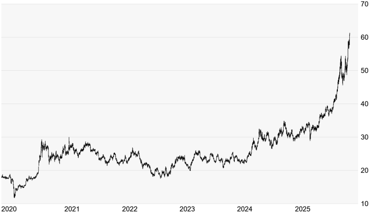 Der Silberpreis ist derzeit kaum aufzuhalten. Ging es erst im Oktober erstmals seit Jahrzehnten wieder über die runde 50-Dollar-Marke, kletterte der Silberpreis gestern auch erstmals über die Marke von 60 Dollar. Das Plus seit Jahresanfang ist damit auf über 100 Prozent angewachsen. Und es sieht aktuell so aus, als ob auch die 60-Dollar-Marke die Silber-Rally nicht aufhalten kann – in den frühen Morgenstunden kletterte der Preis des Edelmetalls auf 61,34 Dollar. Silber läuft damit
